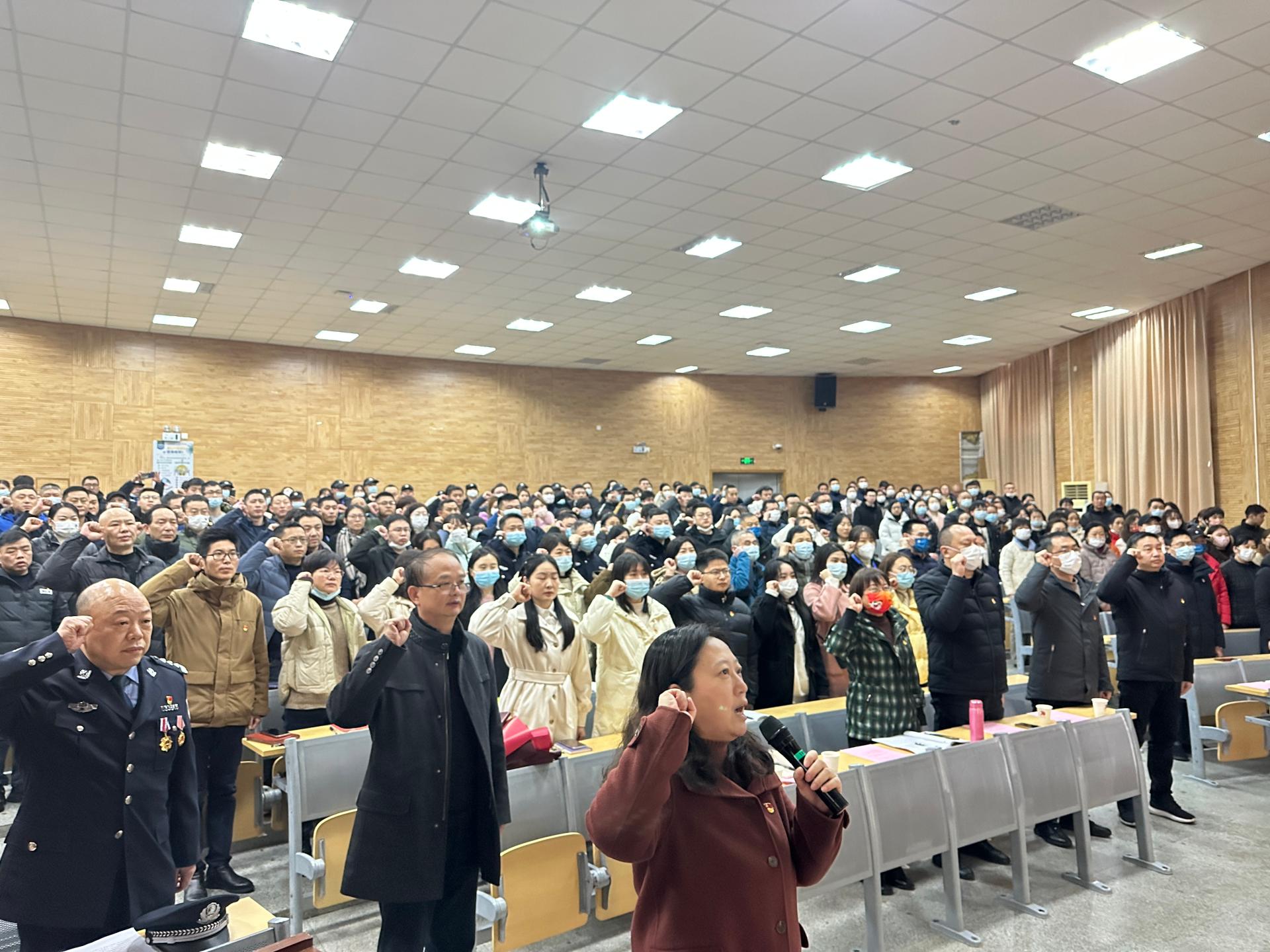 首先,主持人代清风同志介绍胡永鹏警官的基本情况,让大家全面了解到全国优秀警察、“荆楚楷模”年度人物——胡永鹏警官的优秀事迹,学习他“甘当小事警察、守护平安家园”的精神,学习他扎根基层、服务群众、大公无私的高尚情操,使同志们真切感受到人民性是中国共产党最鲜明的底色。开讲前,后勤党委委员林芸同志带领全体与会党员重温入党誓词,随后由胡永鹏警官向全体与会成员进行授课。