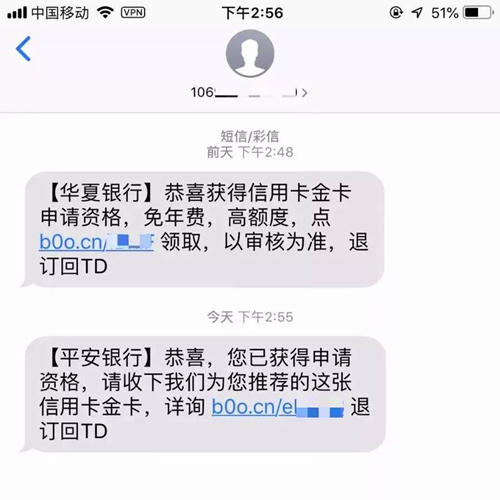 如上图,骗子发送的短信是106开头的,这是国家工信部批准的短信代发平台,而且短信前面有【XX银行】几个字,也符合短信群发管理的规定,这致使大多数人都会放下戒备心理。