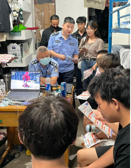 近期,学校诈骗警情呈高发态势,为进一步强化广大师生防骗意识,筑牢校园反电信网络诈骗安全网,安全保卫部联合喻家山派出所开展“进楼栋、进班级、进宿舍”的“三进”反诈专项宣传。2023年5月23日19:00,安全保卫部治安科(西区)科长彭红进和喻家山派出所副所长叶欣、干警姜涵带队,在数理学院辅导员托乎尼牙孜的协助下,走进南望山校区西区53栋数理学院宿舍,面对面以座谈交流的方式逐一开展了一次反诈宣讲。