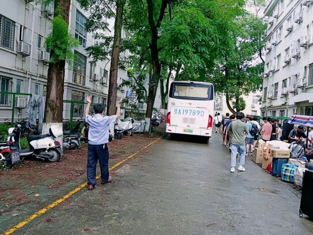 7月6日早上6:30,在北区女生大院以及25栋楼下早已摆放好了许多行李,同学们正在焦急的等待第一班车的到来,张涛副科长带领我科室全体成员从早上6:00起时刻待命,在班车到来之前帮助同学们将行李整顿好,安排在合适的位置,避免前一夜的积水将同学们的行李浸湿,在组织班车进入学校后,同学们战成一条队伍,形成搬运“流水线”,合力将行李放在车厢内,在此时我科室科员积极出力,帮助同学们将行李摆放整齐。
