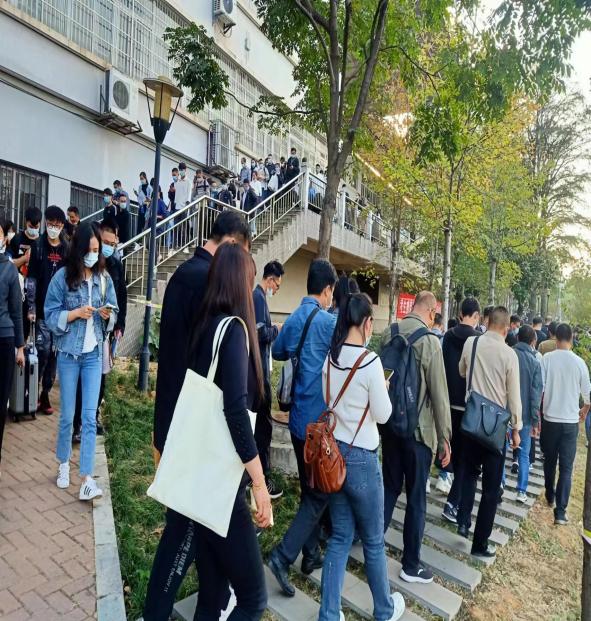 考试入校时在入口处查验准考证、二码、24小时核酸,组织考生有序沿闭环路线入考场。考试期间对考场周边环境进行巡逻,保证考场周边环境安静有序,确保考生安心考试。
