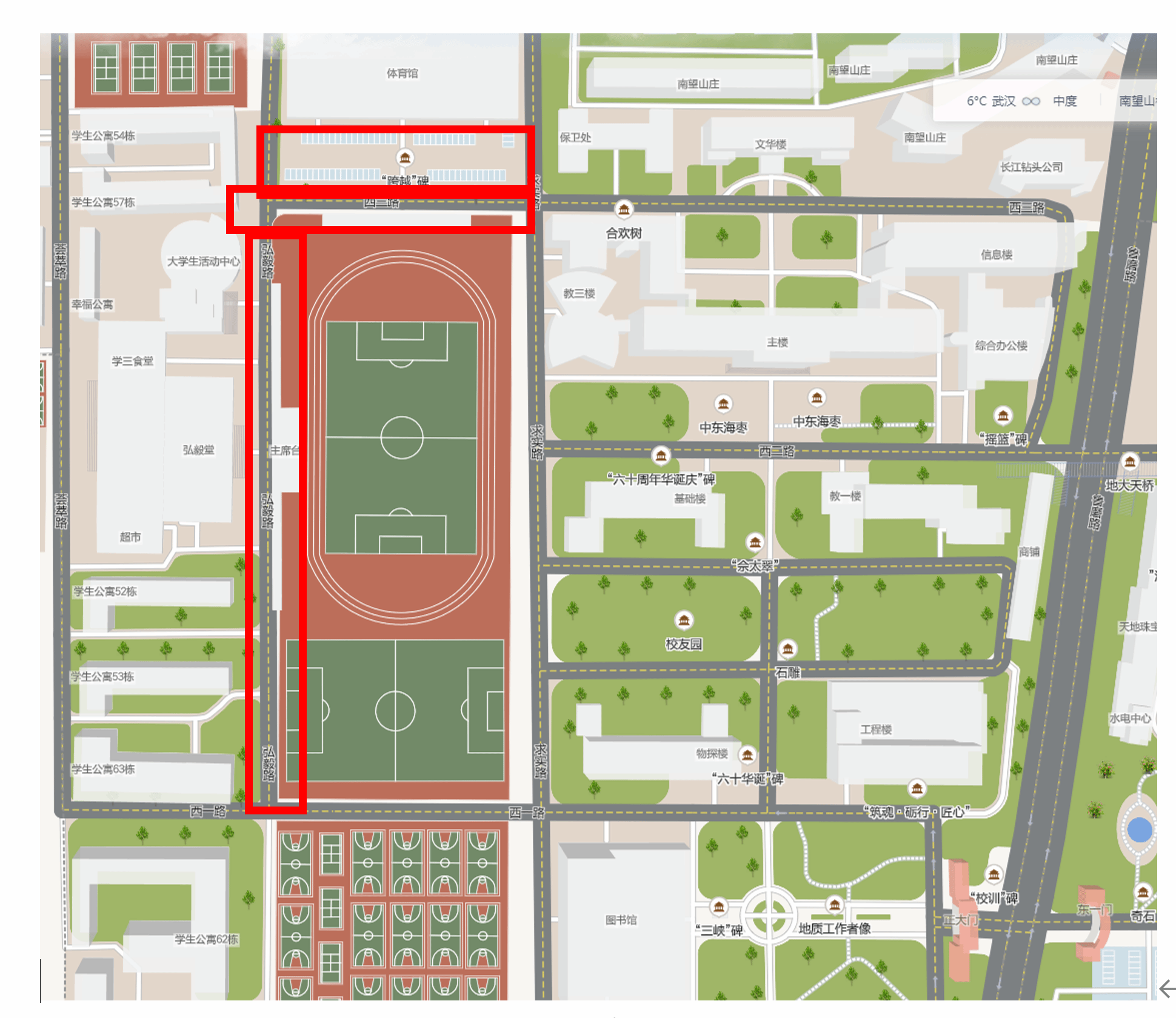 禁止停车范围:弘毅路(西一路至西三路路段)、西三路(弘毅路至求实路路段)、西区体育馆门前广场,具体范围见附图。