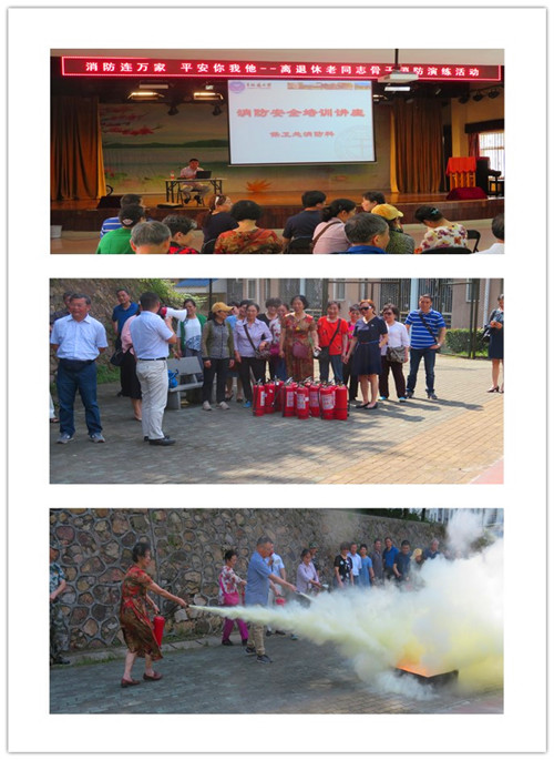 2018年5月15日上午,30余名退休老同志参加了由老干处和保卫处消防科共同组织的消防培训和演练。