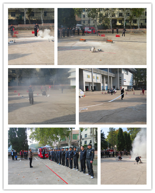 2018年11月13日上午,后勤保障处在体育馆前举办从业保安消防实操大比武活动,保卫处消防科对活动进行了指导,并提供了消防器材。