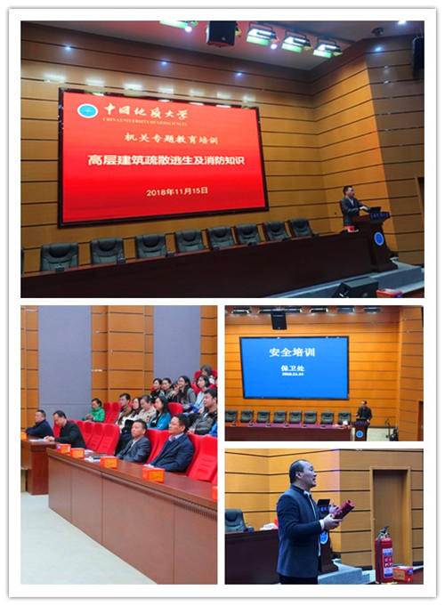 2018年11月15日下午,机关各处室200余名老师在新综合教学楼A0113报告厅参加了由保卫处、校办、组织部组织的“高层建筑疏散逃生及消防知识”专题教育活动。
