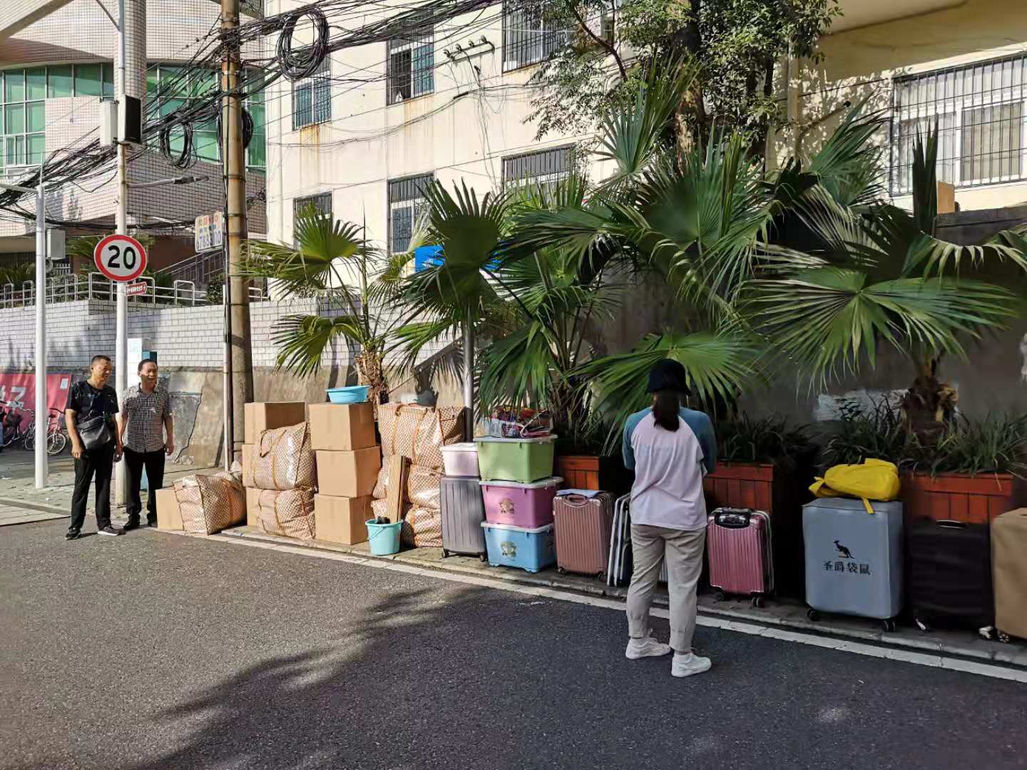 2019年8月25日早上6时,地大保卫巡逻队员已着装达到指定的西二门、教三楼十字路口、58栋十字路口、54栋丁字路口、体育馆西侧、西区弘毅堂等地点,站岗守候、治安巡查,准备迎接6000余名师生的乔迁。6点30分许,随着一辆辆通勤客运车驶进西区,我们的乔迁安保工作正式开始了。“倒-倒-还倒一点,好-”,乔迁车辆在巡逻队员的指挥下,停放井然有序,这是我们安保工作之一;其二,继续清理交通沿线的所有无关机动车、电动车、自行车等,本项工作虽然已提前一天完成,但仍全天候不间断巡查,同时各路口安排的固定岗点禁止外来车辆进入乔迁现场,以确保乔迁畅通;第三,我们提供三辆巡逻车为学生拖运行李,从学生公寓楼下运至乔迁车辆,并帮学生抬包、下包;第四,加强乔迁搬运现场及周边的巡查,排查嫌疑人,确保师生财产安全。