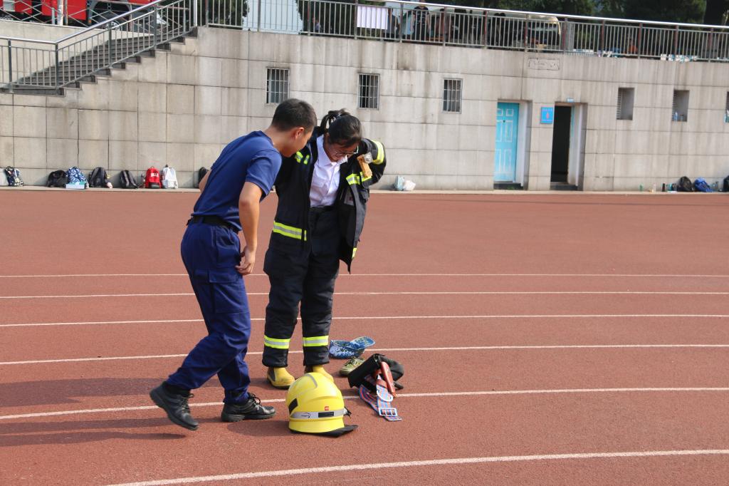 此次培训活动是新生学前教育的重要内容,旨在培养入校新生在突发事件中的自救和应对能力。同学们学习了火场逃生报警、灭火器使用等基础的消防知识,观摩了关山消防中队表演的水带连接、云梯车升降、高喷车灭火及消防战斗服穿戴等消防技能。中国人民解放军中部战区总医院主治医师、湖北省红十字会救护师秦明哲向同学们传授了急症处置,心肺复苏等急救知识,医护人员现场演示了心肺复苏过程。活动中,部分新生体验了灭火器扑灭油盆起火及心肺复苏救护过程,而消防战斗服的穿戴体验更是赢得同学们阵阵的掌声和笑声。