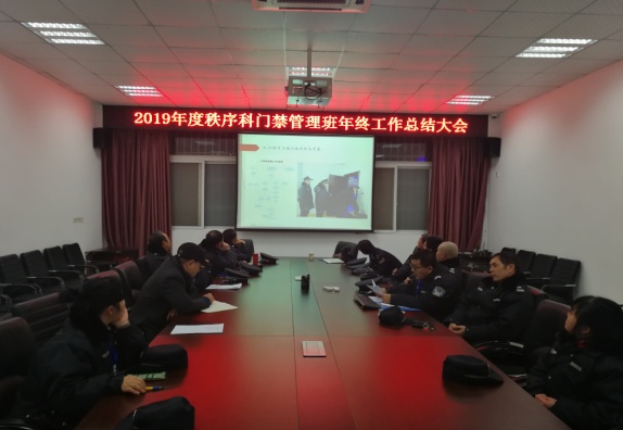 1月10日晚7时30分,秩序科在保卫处会议室召开门禁班2019年工作总结暨队员民主测评会。秩序科彭红进主持会议,分管副处长刘汉参加会议并讲话。