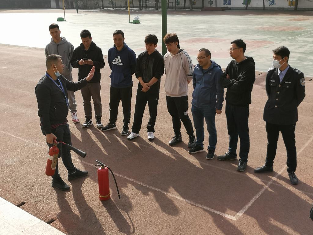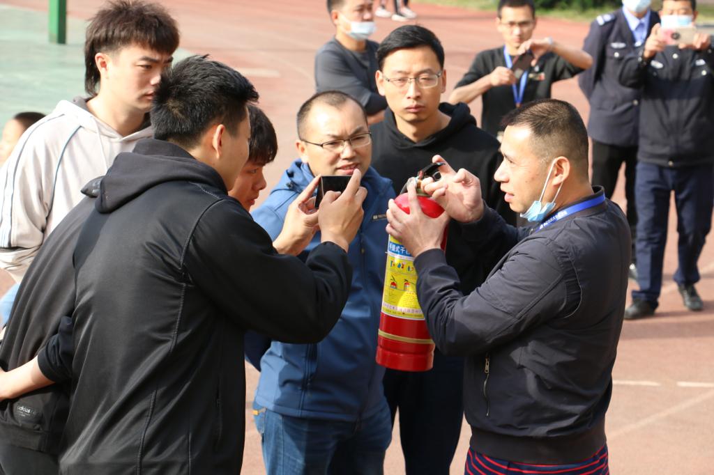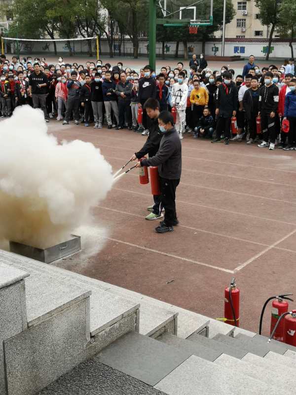当日下午,附校老师利用上午所学的消防知识,给中学生进行了消防培训及灭火器的使用和演练。