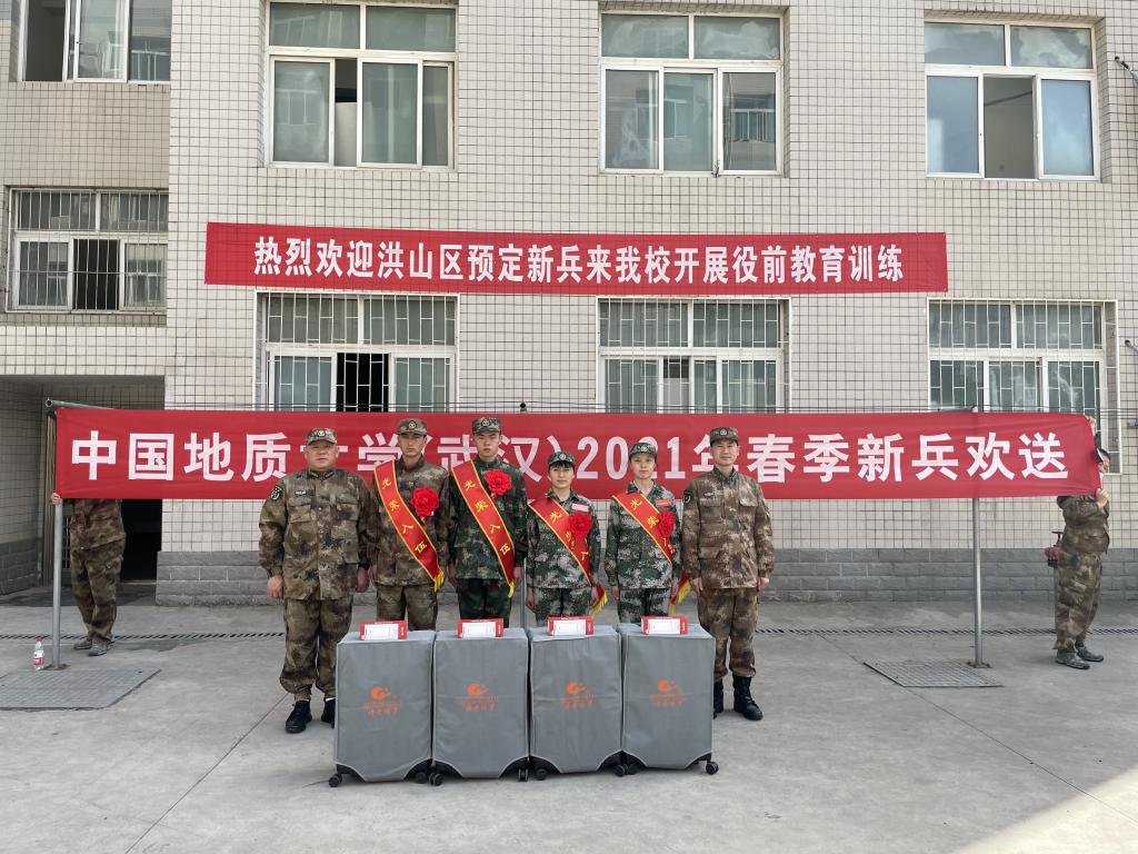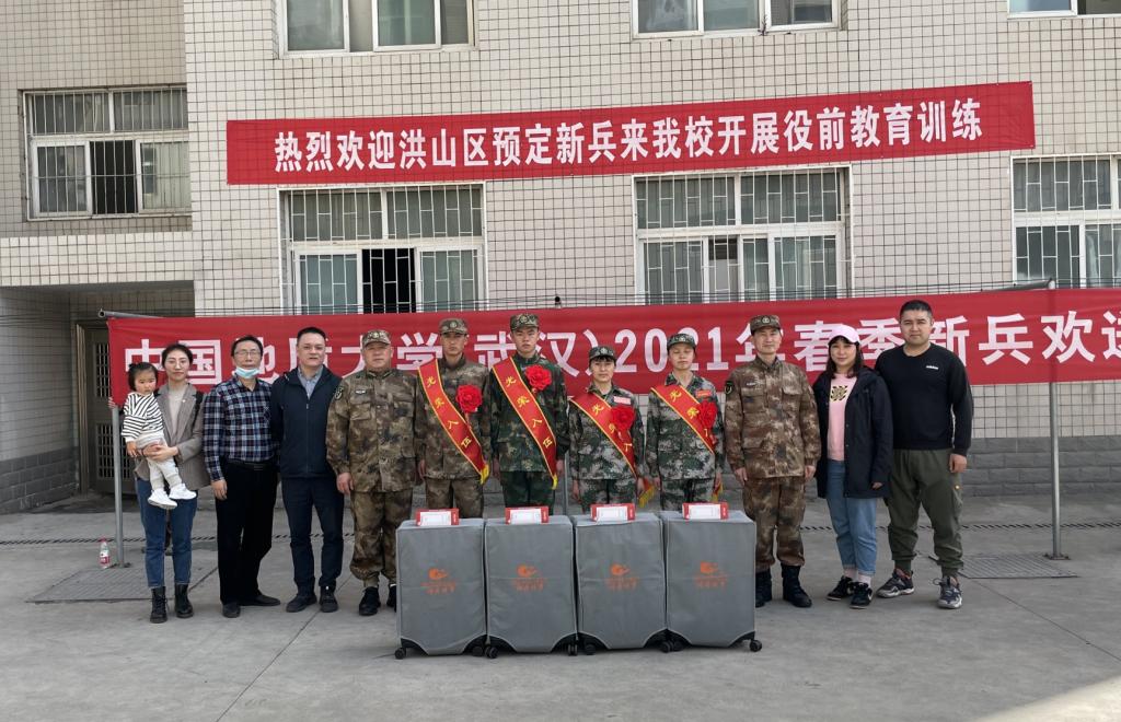 按照洪山区人武部征兵工作安排,所有学生目前在武昌职业学院进行役前训练,为了让学生感受到学校对大学生征兵工作的重视与关怀,今天下午,校武装部单红峰副部长带队前往武昌职业学院对入伍的学生进行了慰问,单部长代表学校武装部为同学们赠送了行李箱、水杯等物资,同时对参军的学生提出了要求,送上了祝福,希望他们在部队里能干出好成绩,为父母争光、为地大争光,做一名优秀的人民子弟兵。