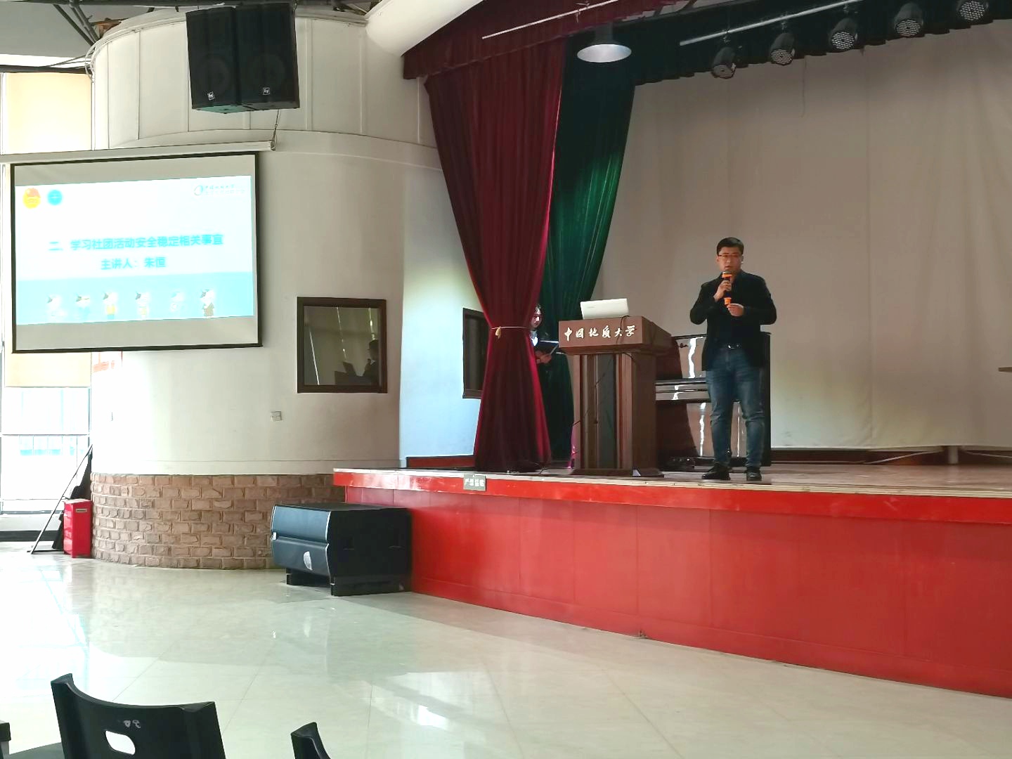 为使同学们渡过一个安全的“五一”假期,4月28日,大学生社团联合会特邀请保卫处政保科给各社团骨干带来社团活动安全稳定培训。