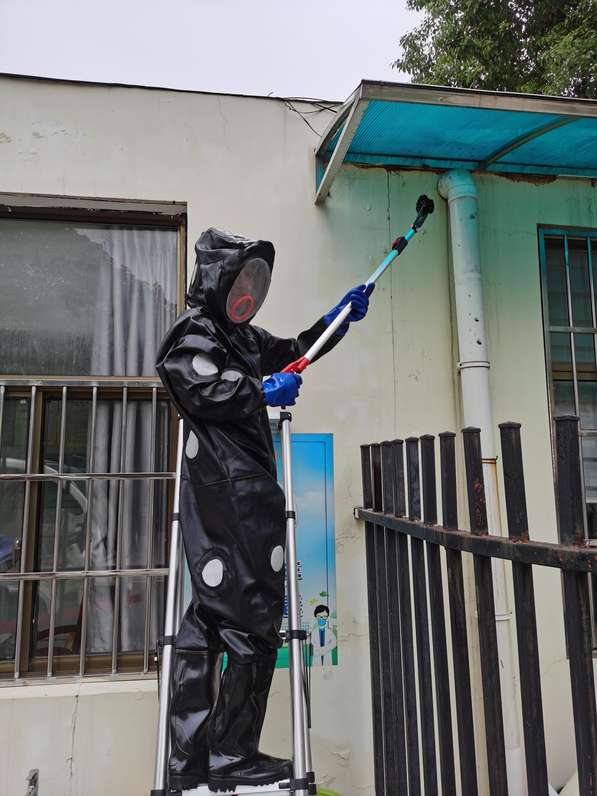 消防科接到报警后,迅速准备装备,赶到现场勘察。为安全起见,避免在摘取马蜂窝时,蜂群受惊扰出现伤人情况,处置人员先提醒周边人员躲避,设置安全区域,然后穿上密封的防蜂衣,再完成处理工作,最后清理现场防止蜂群返回,彻底地解决了马蜂之患。