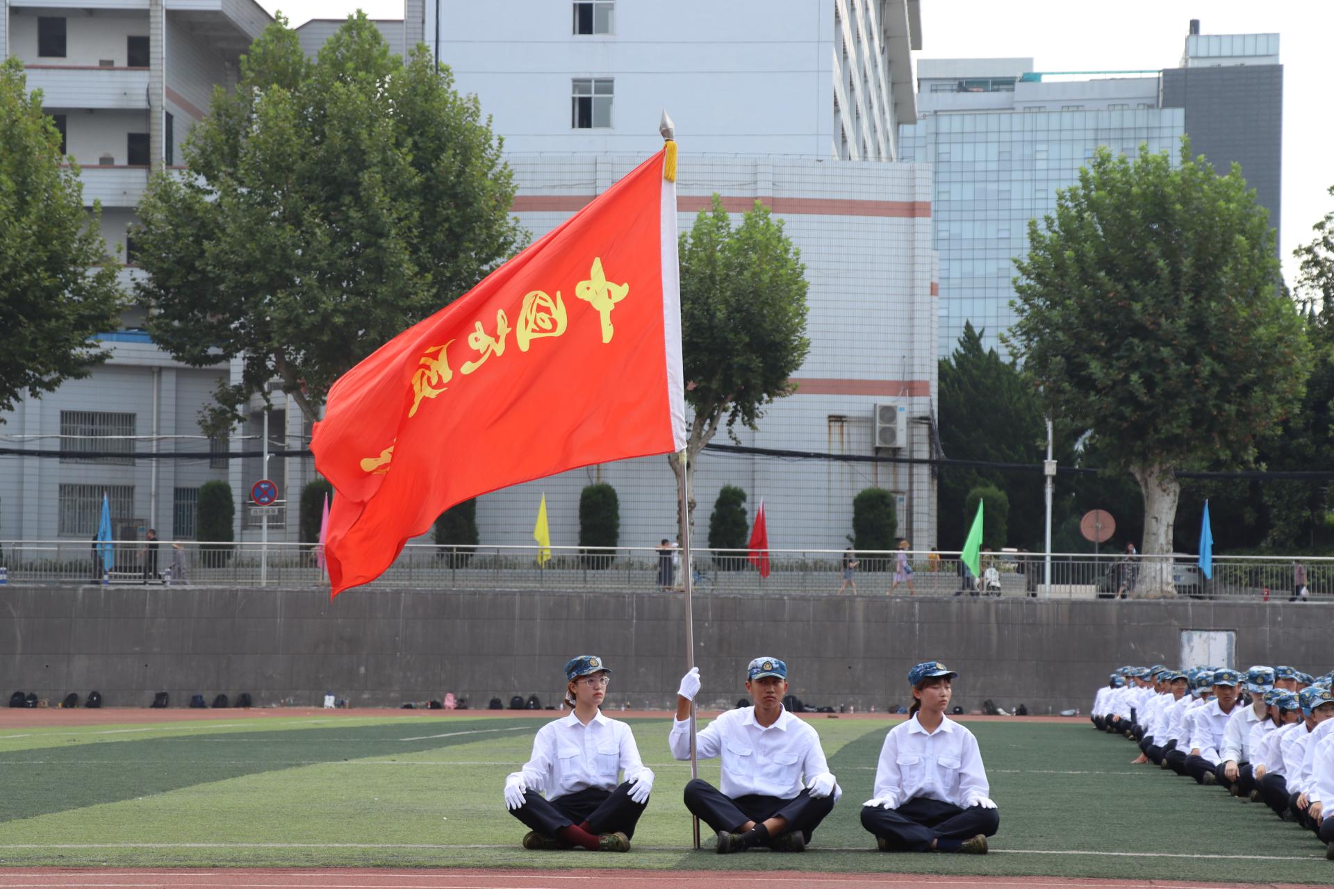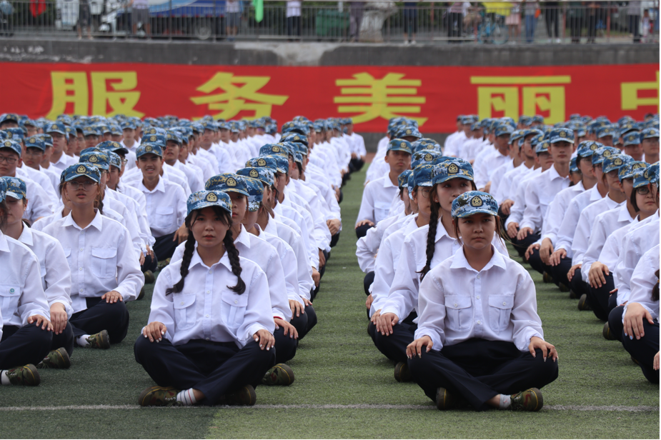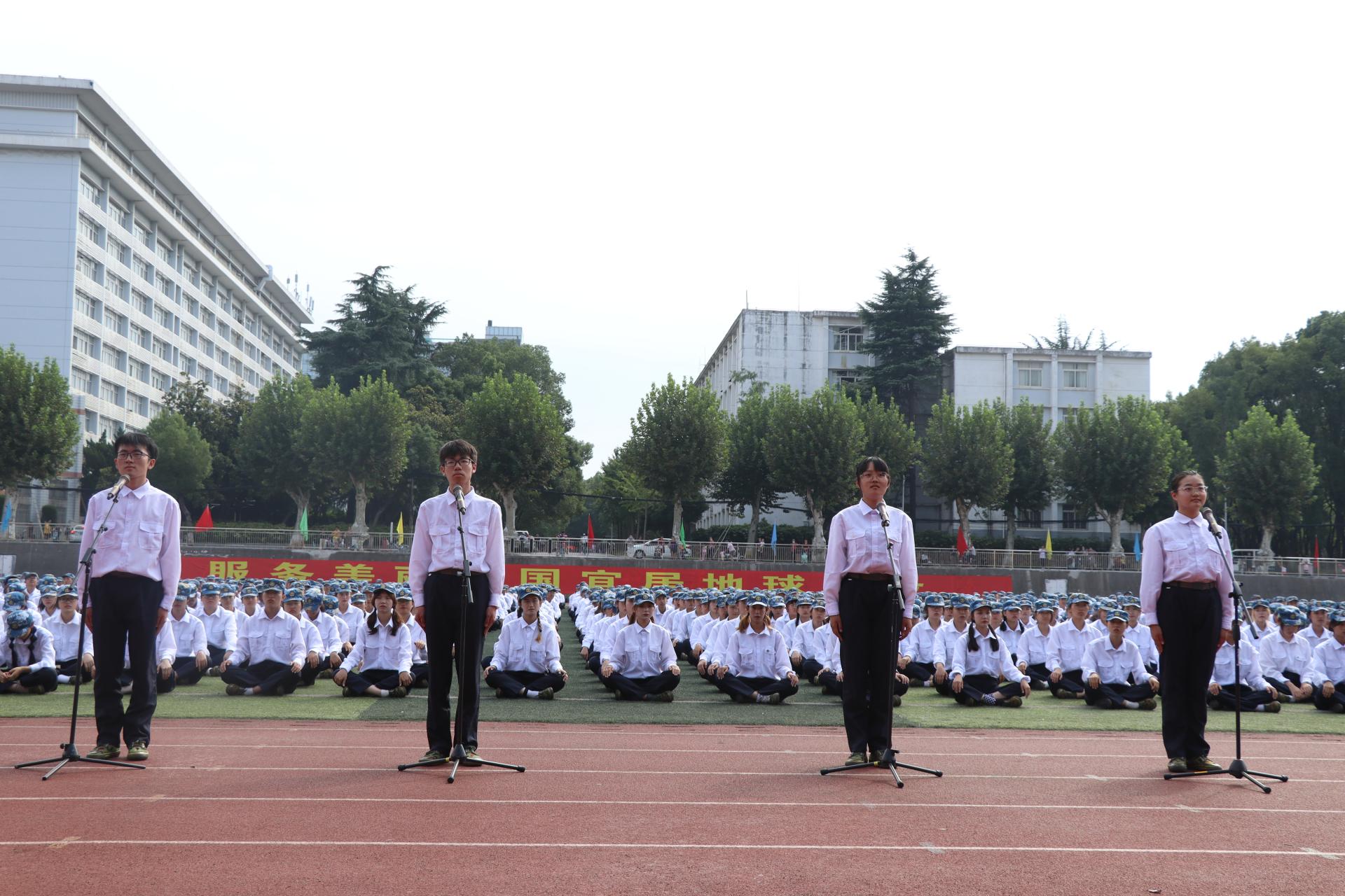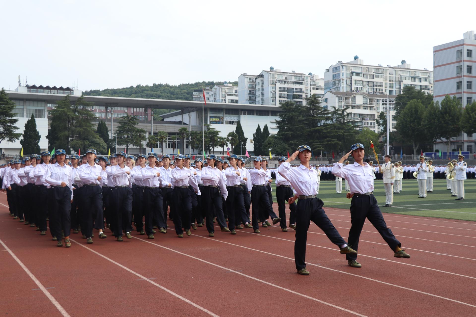 新生们以饱满的精神、挺拔的军姿、整齐的正步和洪亮的口号,依次走过主席台前接受检阅。