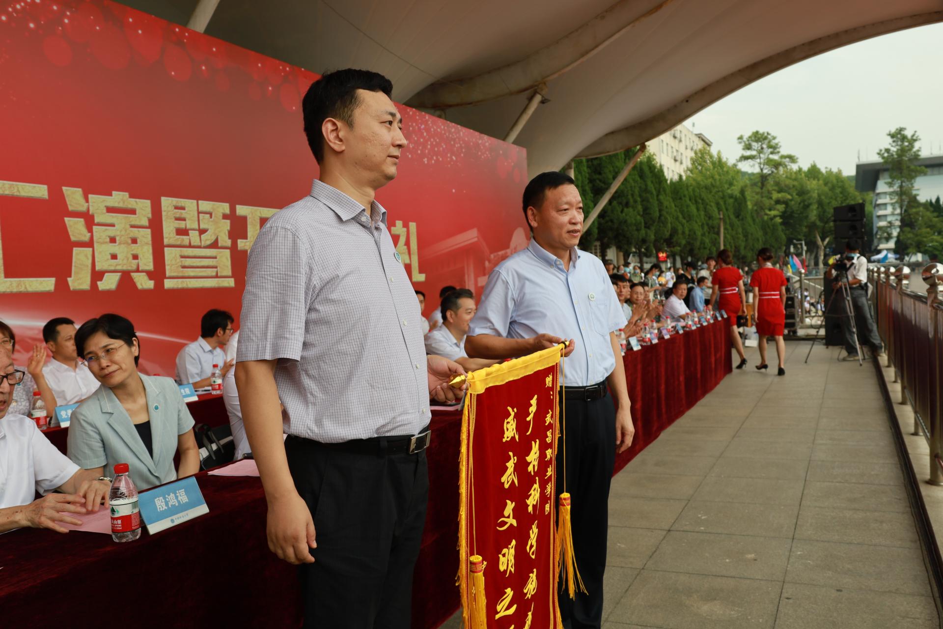 校党委副书记王林清向承训单位武昌职业学院赠送锦旗