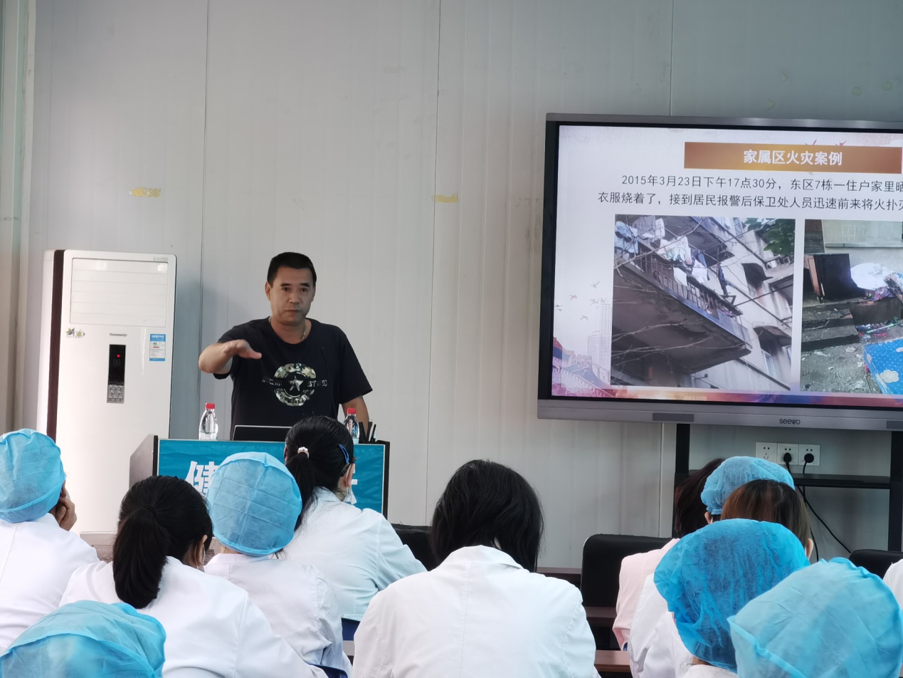 医院是人员密集场所,一但发生火灾,这些行动不便的患者很难脱困逃生。针对特殊性质和特殊人群,消防科着重讲解了火灾的危险性、预防火灾的措施、扑救火灾的方法和逃生疏散的能力。
