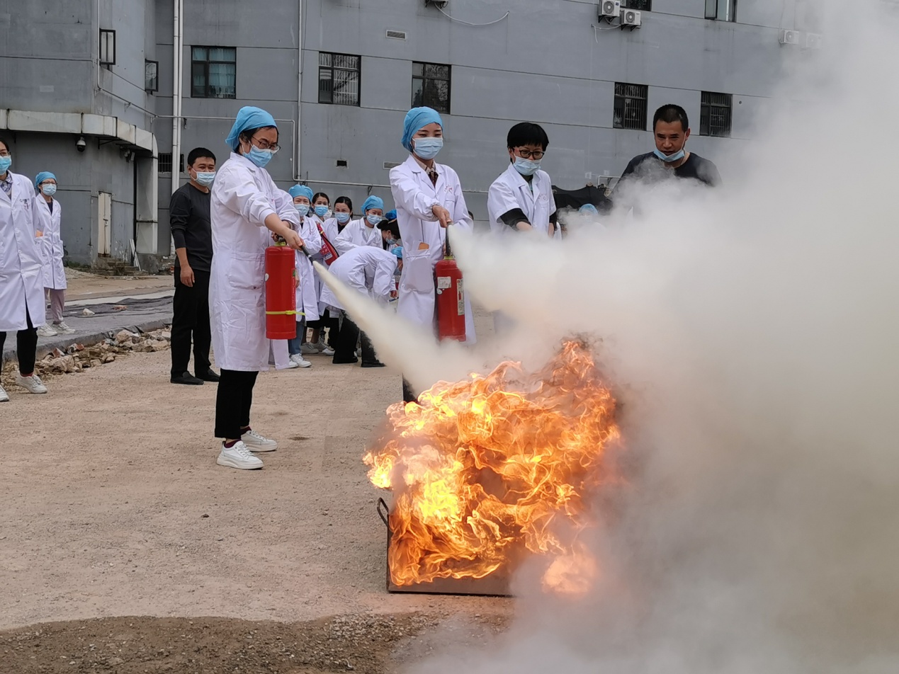 为了理论结合实际,做到学而会用。消防科的同志还到现场教会水带的连接和使用,灭火器的正确使用方法。最后,全体医护人员体验了灭火器灭火实战演练。