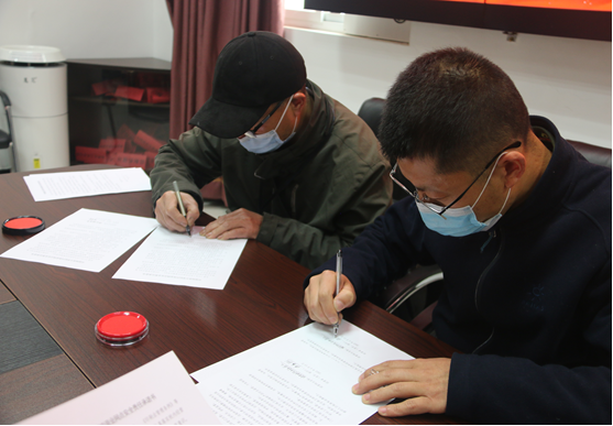 图为特种经营商户现场签订安全承诺书