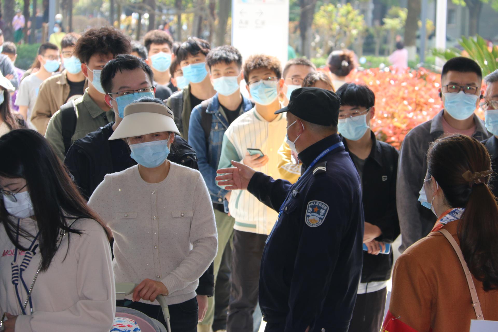 西区体育馆检测现场维持秩序 张献文 摄