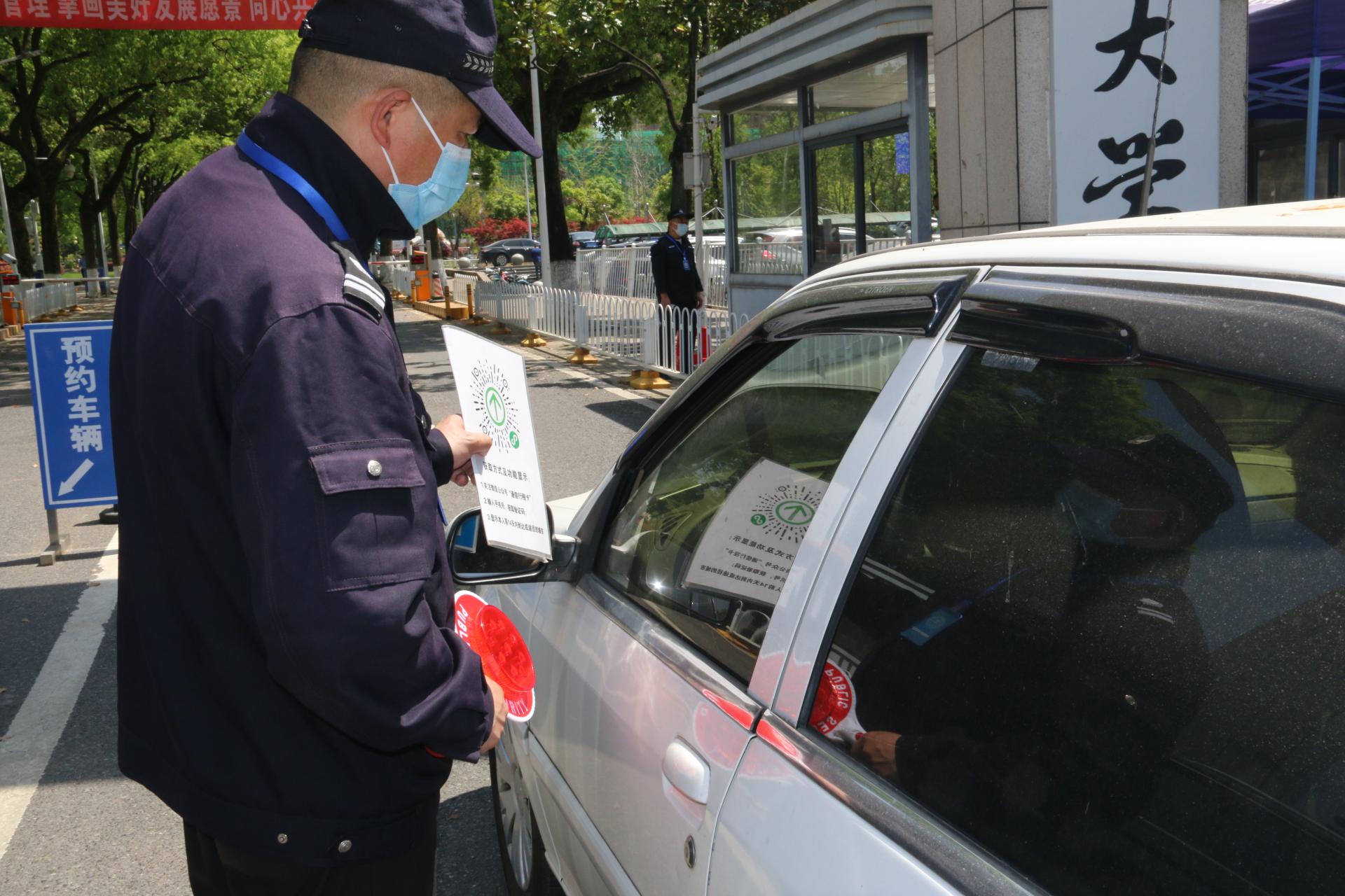 东一门安保人员检查进校车辆人员健康码、行程卡 许微 摄