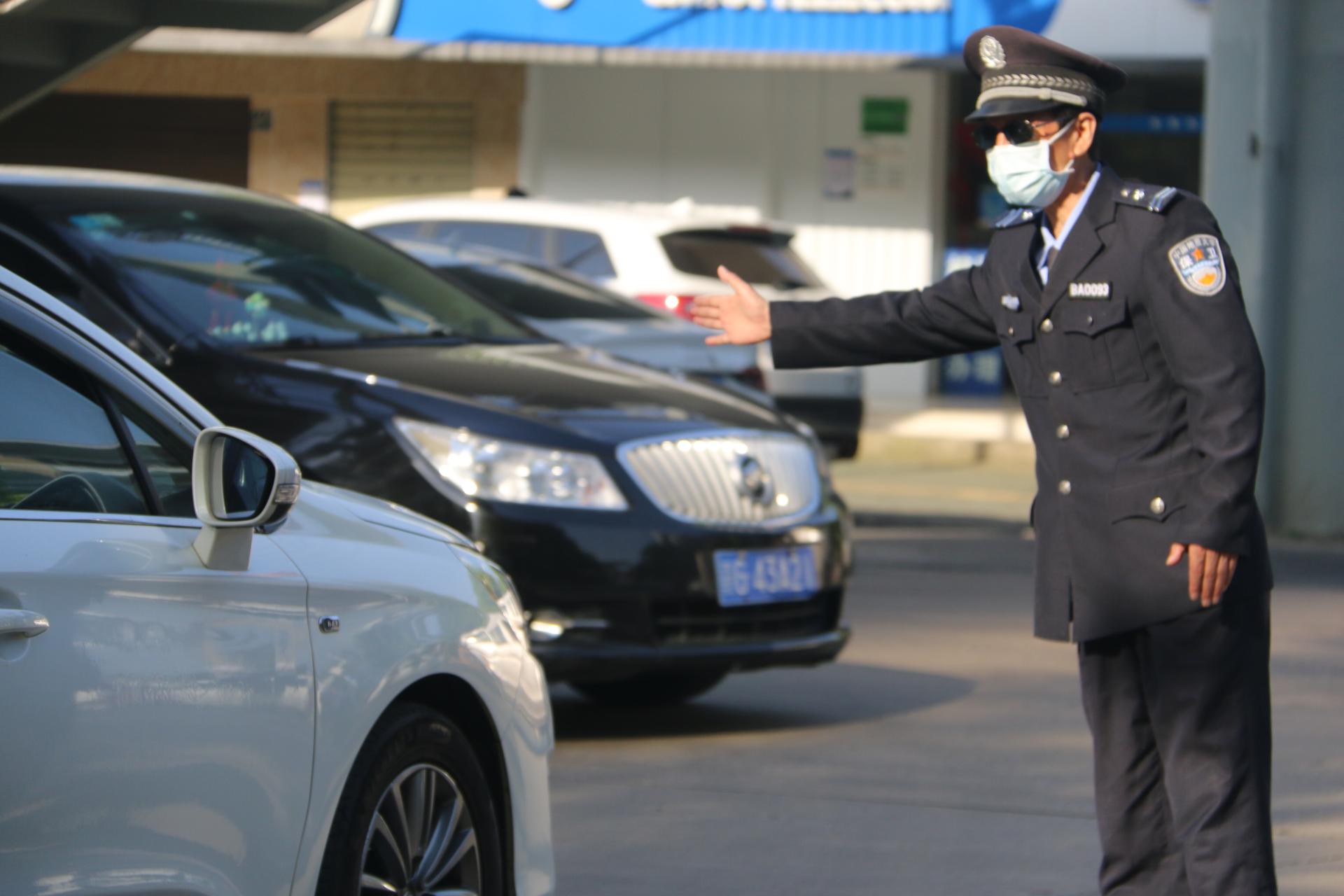 东二门车流高峰期安保队员指挥交通 许微 摄