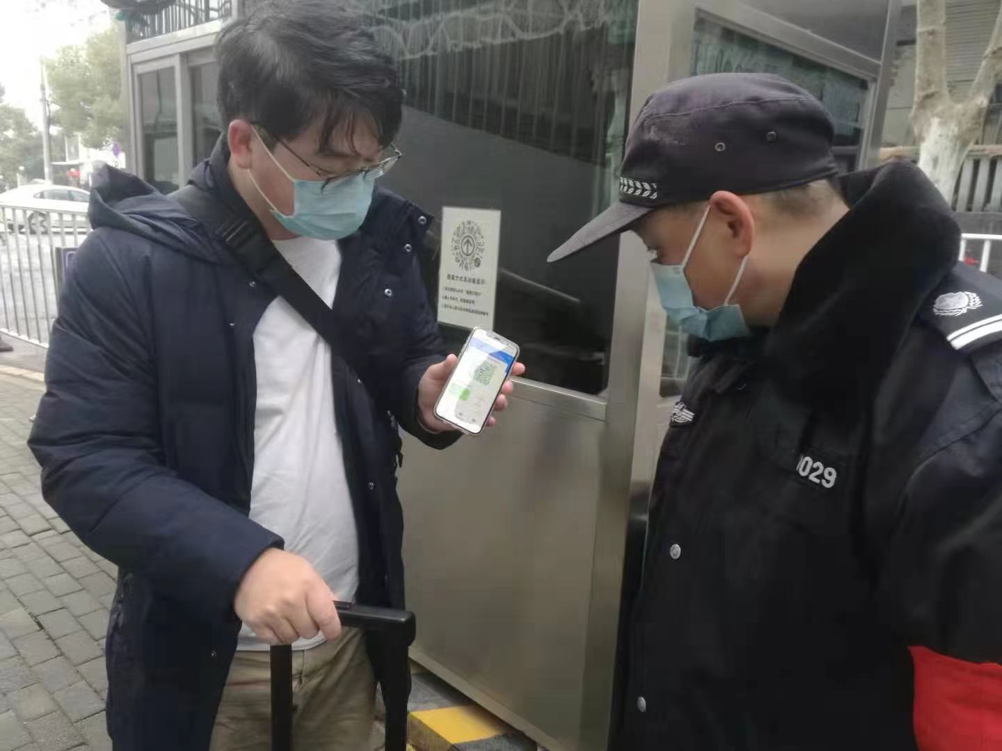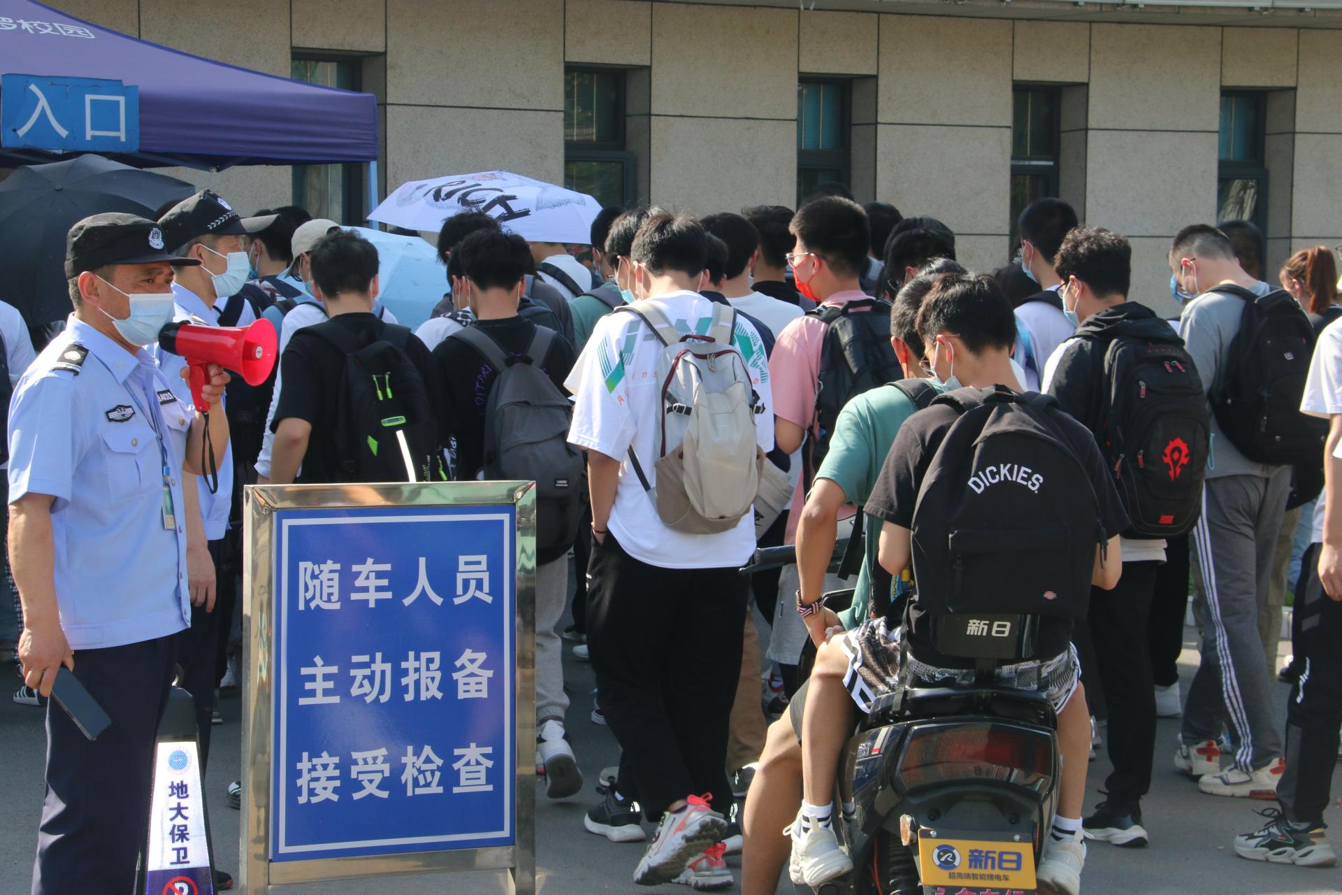 东二门保安查验进校人员健康码、行程卡 张献文 摄