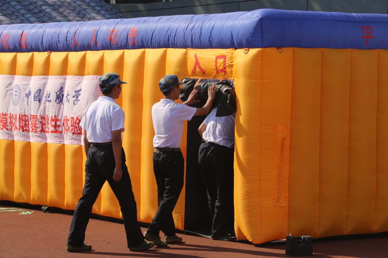 同学们情绪高涨,踊跃参与互动,在消防科工作人员和消防官兵的指导下体验了穿消防服、灭火器实操演练。消防科还在现场搭起来“模拟烟雾逃生帐篷”和“模拟灭火帐篷”,安排新生体验模拟逃生和模拟灭火。整个活动过程紧张有序,实用性强,预期效果显著。