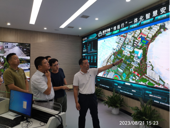 首先,调研组一行参观了数字华师“情指行”一体化智慧安防平台。该平台整合多个子专题,打通技术壁垒,将“人员管理”、“交通管理”、“技防运维”等六大模块统一部署,将人防与技防相结合,实现了校园安防的信息化和数字化。