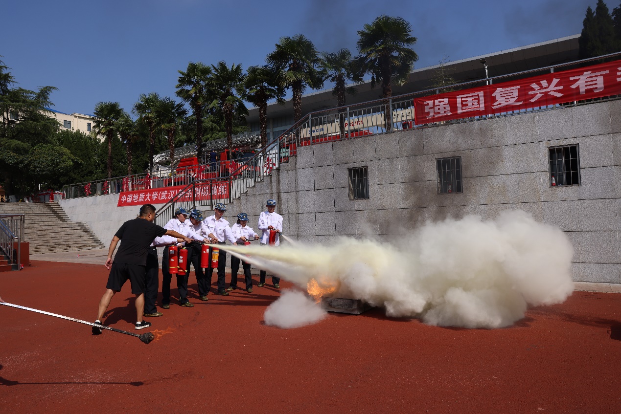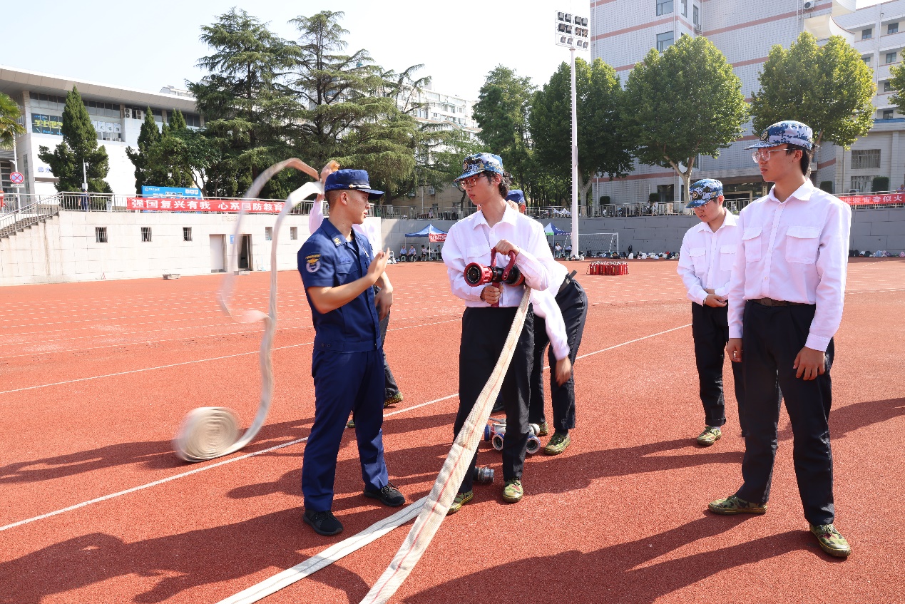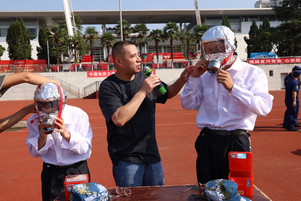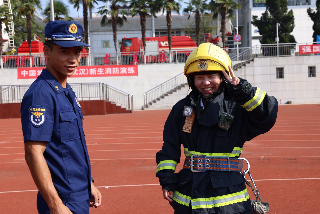 为了增强学生消防安全意识,培养新生在突发性灾害发生时,能熟练掌握有关防火和逃生的知识技能,安全保卫部邀请关山消防救援站官兵、消防科科长刘从贵分别讲解示范了消防设备的穿戴使用方法、灭火器的使用方法等。