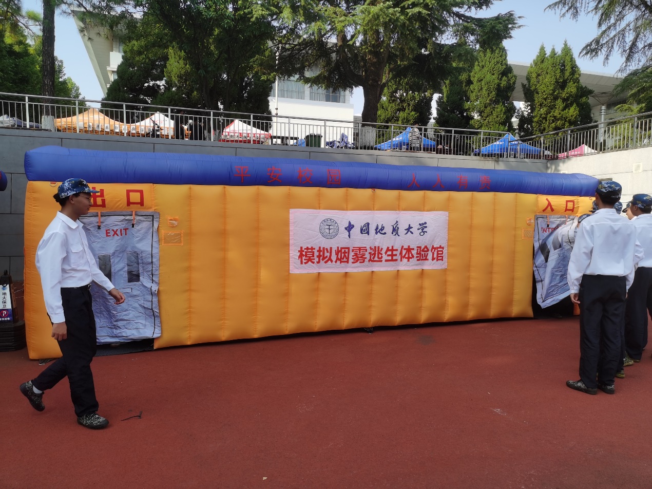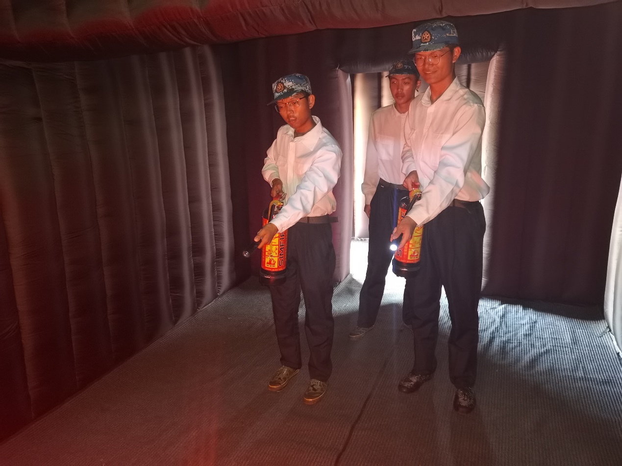 同学们同样情绪高涨,踊跃参与互动,在消防科工作人员和消防官兵的指导下体验了抛水带、穿消防服、佩戴逃生呼吸面罩、灭火器实操演练。消防科还在现场搭起来“模拟烟雾逃生帐篷”和“模拟灭火帐篷”,安排新生体验模拟逃生和模拟灭火。整个活动过程紧张有序,实用性强,达到了预期效果。