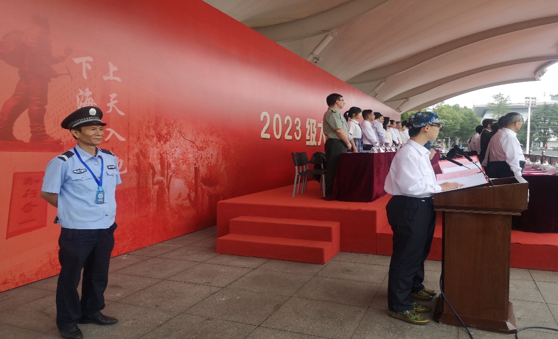 9月24日上午8时,随着雄壮的《检阅进行曲》响起,我校2023级新生军训汇演暨开学典礼在南望山校区西区大操场拉开帷幕,同时标志着为期两周的新生军训工作画上圆满句号。安全保卫部接到此次新生军训安全保障任务后,部领导班子高度重视,成立了军训工作领导小组,进行周密部署,制定详细工作方案和应急预案,确保新生军训各项工作顺利完成。