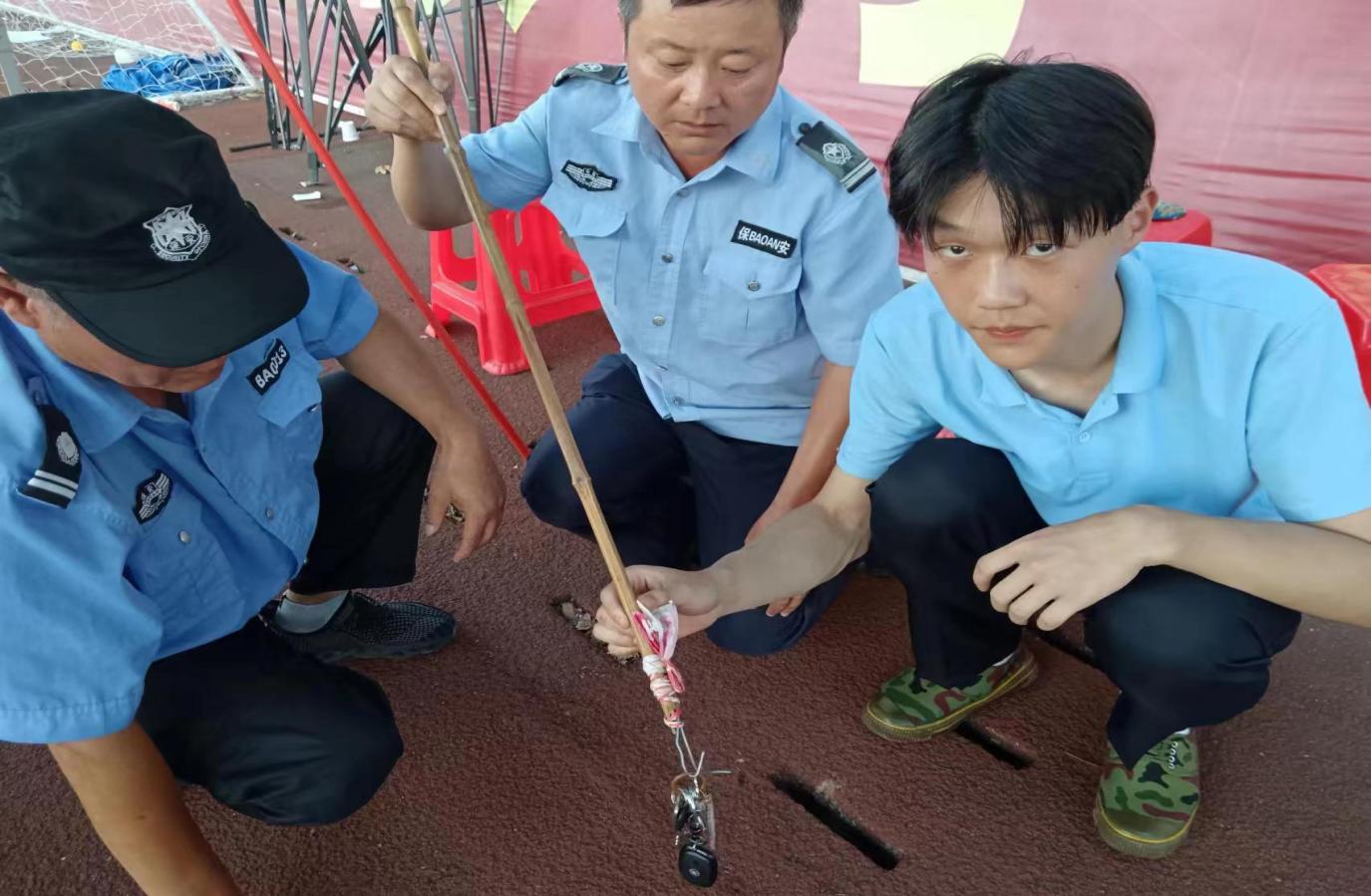 安保部治安科(西区)队员帮新生找回掉入西区操场下水道钥匙