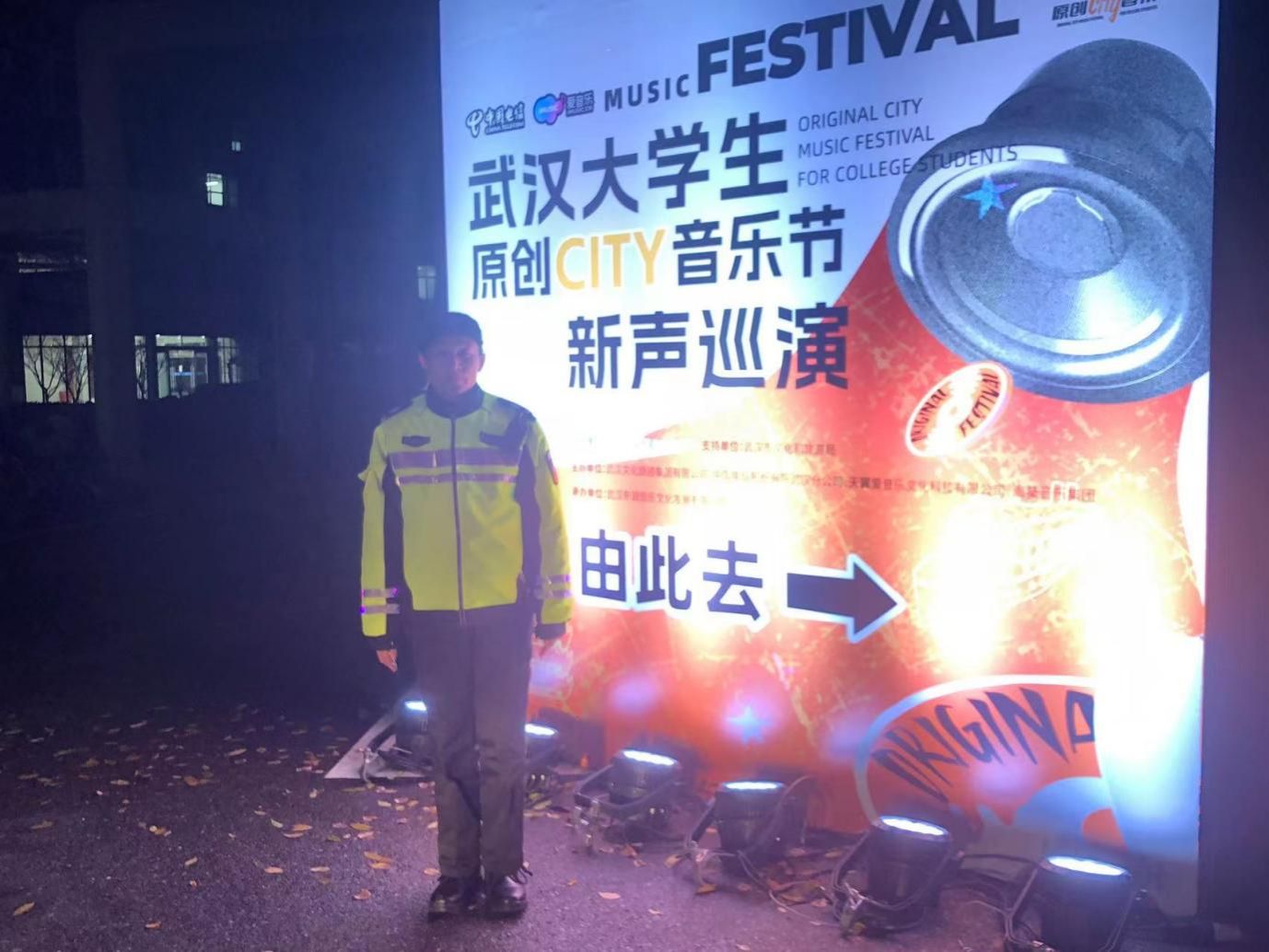 当天晚上阴雨连绵,寒风不断,音乐节一直进行到晚上九点半才结束。而治安科工作人员傍晚前便到达岗位,对会场周边进行检查,及时排除安全隐患,维持现场秩序。在主干道、路口等车流量较大的位置进行安保人员驻守,引导车辆有序通行,维护道路交通秩序,避免发生交通事故和交通拥堵。会场内场开展入场验证,同时增加巡逻,守护着每一位前来参加活动的师生的安全,各项举措有力地保证音乐节顺利进行。