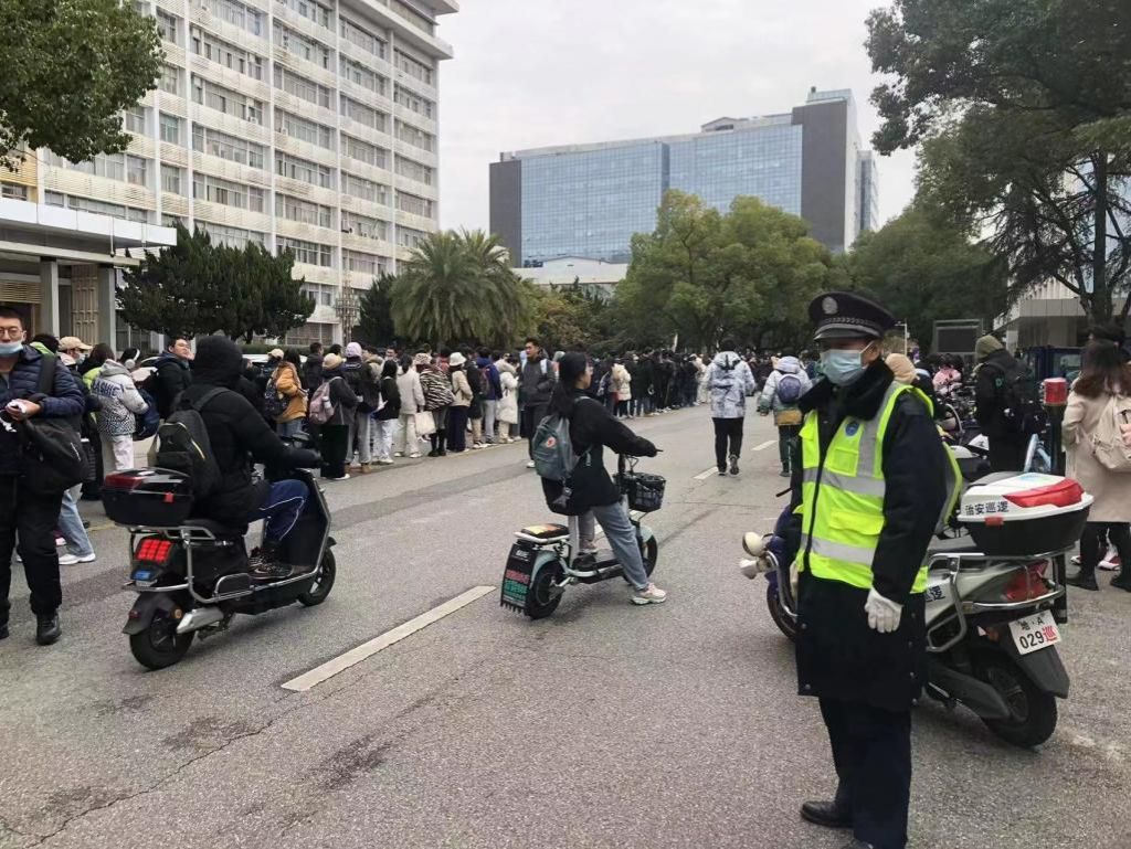 ----安全保卫部保障大学英语四六级考试顺利举行 (通讯员:罗元胜)12月16日,我校迎来了全国大学英语四六级考试,考试在我校南望山和未来城两个校区同步进行。安全保卫部高度重视,严格按照本科生院制订的考务工作方案和部门协调会议精神,制订安保工作方案,精心组织实施,确保考试安全保障工作顺利完成。 安全保卫部召开英语四、六级考试工作布置会 李建威副校长巡视东区综合教学楼考场情况 安保工作人员保障西区教一楼考场 秩序科队员保障考场周过交通秩序 (撰稿:罗元胜 照片:魏刚、彭红进 审核:彭冠军 )