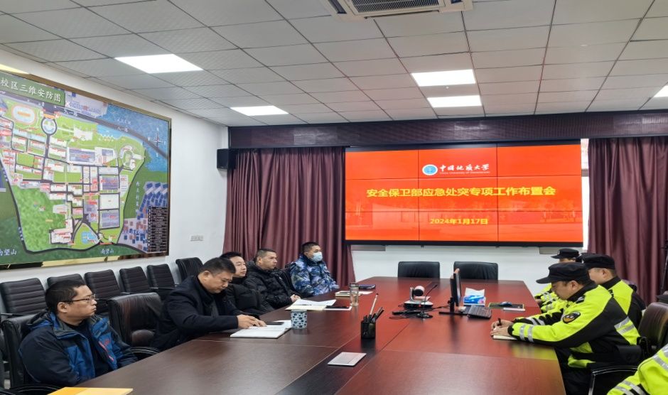 (通讯员:彭红进)为切实做好寒假期间校园安全稳定工作,提高应对突发事件的能力,确保广大师生度过一个平安、祥和的假期,安全保卫部于1月17日上午组织召开了“应急处突专项工作布置会”。安全保卫部部长何建新、各职能科室负责人、驻校物业公司负责人及应急处突队全体队员参加会议。会议由彭冠军主持。