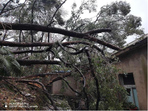 近日,武汉市连续发生冻雨、冰雪极端天气,形成了极端天气灾害。校园门岗通道结冰积雪,校内大量树木因冰冻积雪树枝折断掉落阻碍交通,南望山不少树木整体倒下,导致西区基地宿舍受损,电力中断。