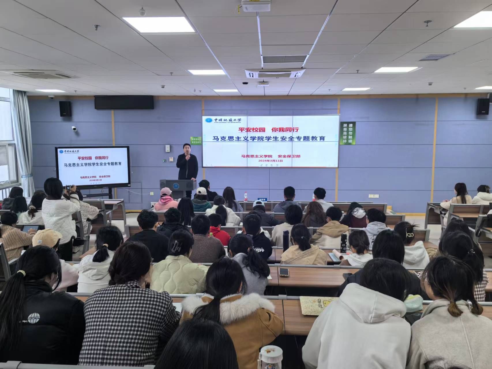 (通讯员:魏景明)2024年3月11日下午,马克思主义学院在东教楼C209组织本硕博全体学生们开展了一场新学期安全专题集中教育活动。安全保卫部彭冠军受邀对校园安全主题教育内容进行了宣讲。