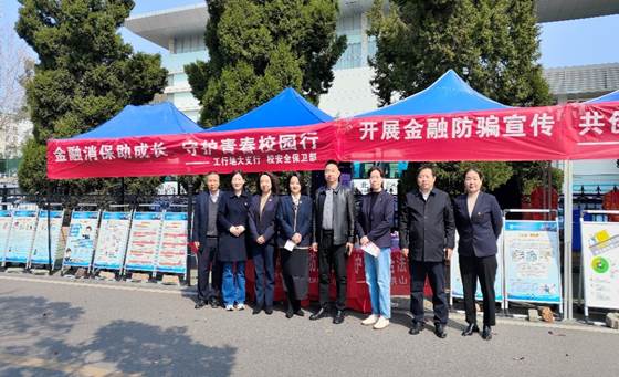 (通讯员:魏景明)3月11-15日,安全保卫部联合中国工商银行地大支行在南望山校区西区体育馆前开展了为期5天的金融专项防骗宣传;本次防骗宣传活动以“金融消保助成长,守护青春校园行”、“开展金融防骗宣传,共创无诈平安校园”为主题,旨在进一步普及金融常识,切实提升师生金融防控意识,倡导树立合理消费观念,有效防控金融诈骗;安全保卫部副部长彭冠军、中国工商银行洪山分行和地大支行领导莅临指导。