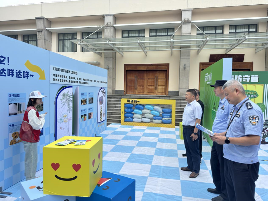 “国际禁毒日是哪一天?”、“冰毒是源于哪个亚洲国家?”、“《中华人民共和国禁毒法》颁布实施是在哪一天?”。禁毒知识问答在趣味互动主题区如火如荼展开,禁毒民警们引导师生们踊跃参与,积极答题,并向成功参与者赠送了活动纪念品。