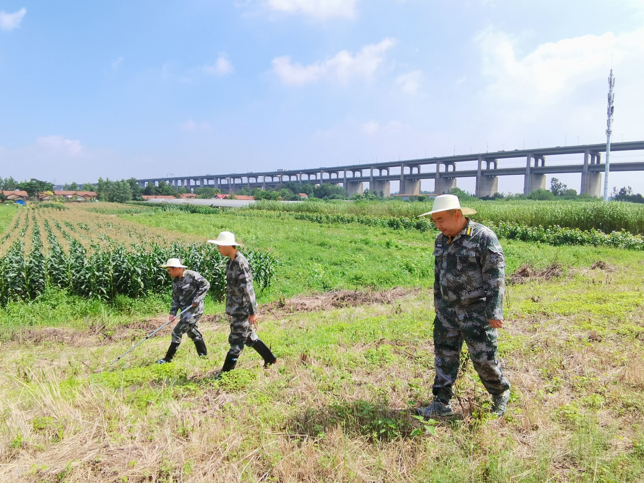 地大民兵应急分队正在执行巡堤查险任务
