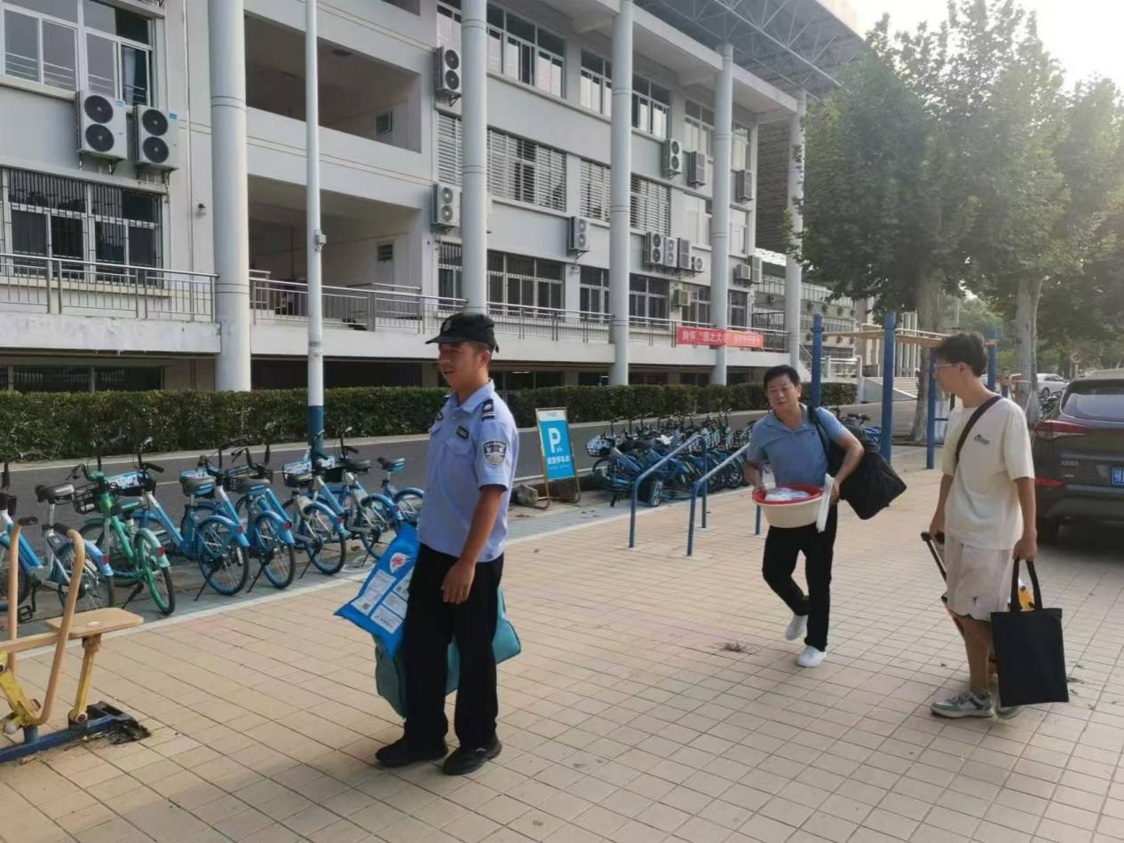 除了指挥交通,安全保卫部治安科(北区)的同志们还时刻保持着高度的警惕,保护着校园的安全。他们加强了校园内的巡逻力度,及时发现并处理各种安全隐患。无论是新生的行李安全,还是校园内的治安秩序,他们都给予了无微不至的关怀和保障。