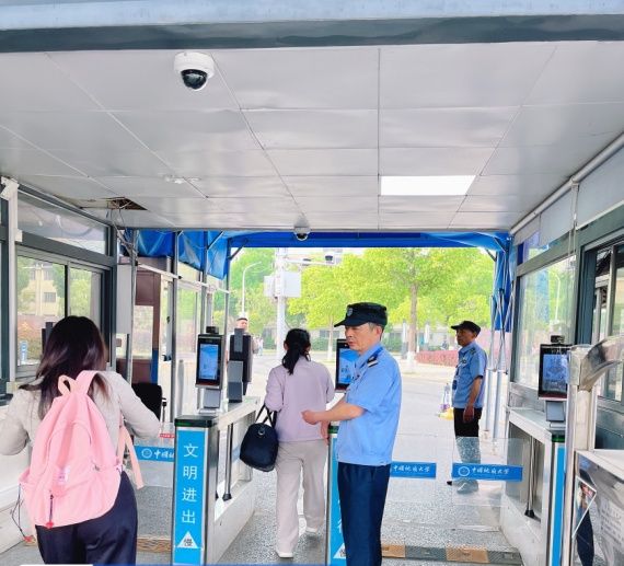 协调驻校物业公司严格门禁管理,查验入校人员身份,严防无关人员进入校园。安排安保人员为考生提供路线指引、考场分布咨询等服务,及时妥善处理考生证件遗失、身体不适等突发状况,并为行动不便的考生提供护送服务,赢得广大考生好评。