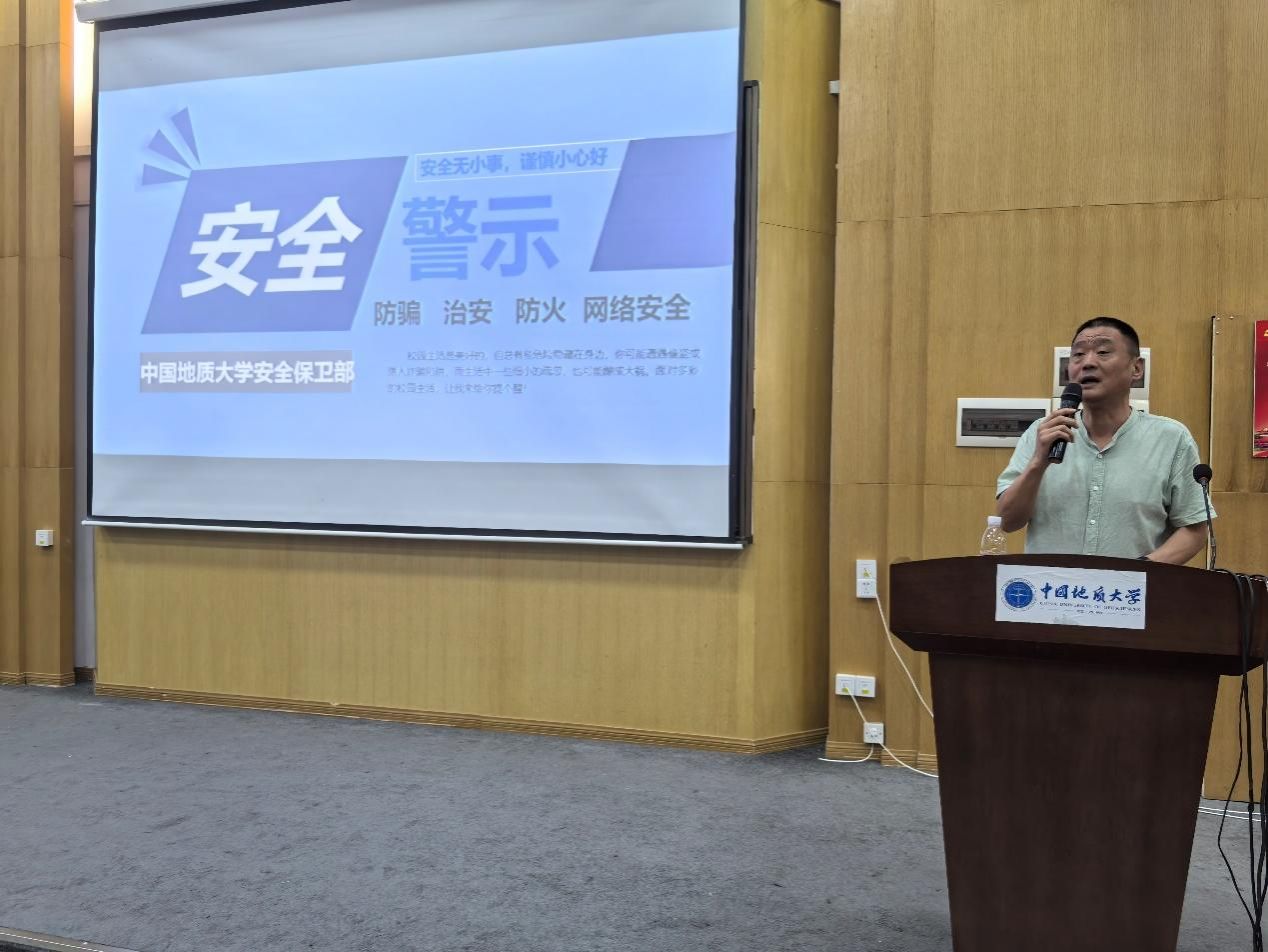 (通讯员:张涛)时值全国第二十四个“安全生产月”,安全保卫部响应“人人讲安全、个个会应急——查找身边安全隐患”的活动主题,主动走进计算机学院,为2024届全体本科生带来了一堂内容翔实、案例生动的大学生安全教育课。未来城保卫综合办公室张献文主任从反诈防骗、治安防范、校园消防、网络安全及毕业季饮酒安全等领域,开展多维度安全教育,增强大学生自我安全防范意识,护航莘莘学子多彩大学生活。