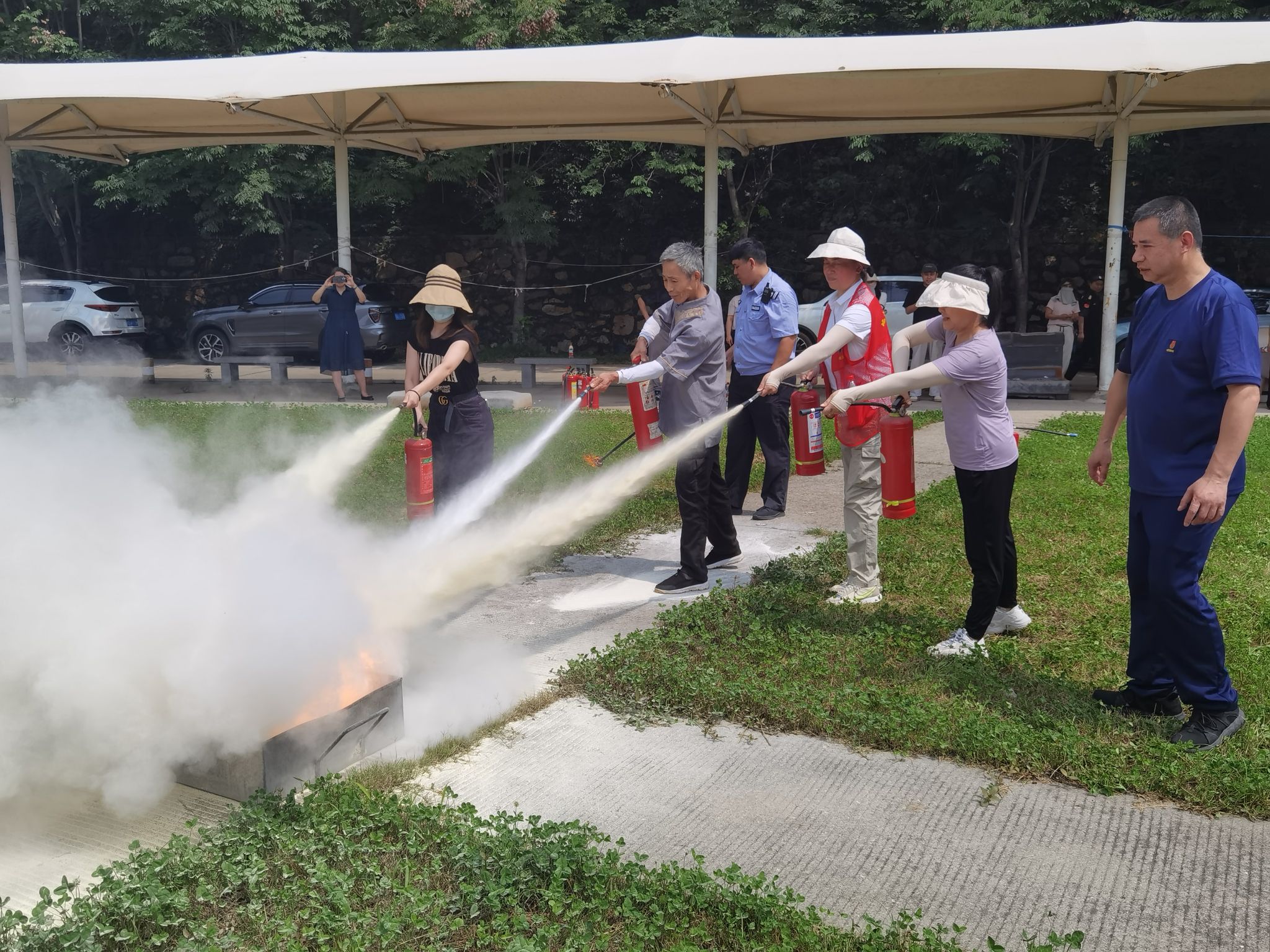 强化校园安防队伍建设,提升应急处突能力。为打造一支素质过硬的安保队伍,安全保卫部联合安保物业公司针对应急处突队员、门岗值守队员,开展了应急疏散演练和灭火实操,强化了协同处置能力,检验了应急预案可行性。