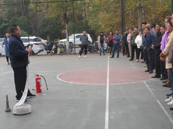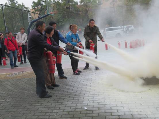 2019年11月21日上午,校内经营商户近百人,参加了由保卫处、劳动服务公司组织的消防知识培训及灭火器实操训练。