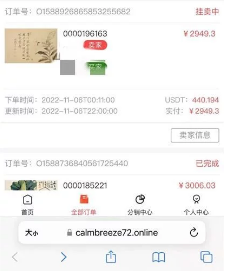 11月8日下午,极目新闻记者通过小江提供的链接登录抢购字画的平台,提示需要输入账号及密码,“所有的账户都是实名认证的,外人是进不去的”,在小江提供的截图中显示,目前点进链接后仍可以点击平台首页的体验区,并能看到字画和价格。平台分销中心也可以查到小江的账号提现明细和提现佣金。
