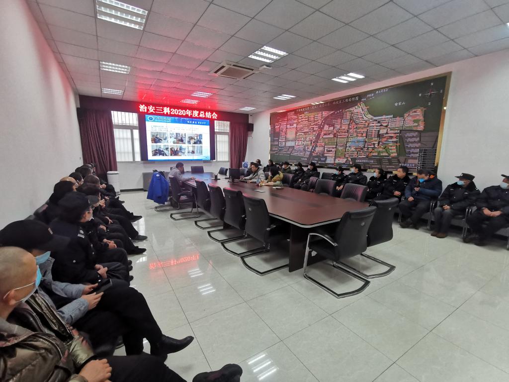 总结会由张涛同志主持。首先,由科室人员做一年的工作汇报。师迪同志梳理了2020年日常工作,重点介绍了疫情防控工作。田野同志汇报了一年来案件侦破、民事纠纷调解、突发事件处置等。冼少荣同志介绍了楼道管理工作。随后,东区班四位班长述职。班长们首次用PPT汇报的形式,向大家展示一年来的工作和对2021年工作的展望。汇报完毕,张涛副科长总结发言,并对大家提出新要求。最后,单红峰副处长对治安三科一年来的工作做了点评。单处长对三科的工作表示肯定,称赞在防疫期间做出的突出工作。同时,提出三点意见:1.常态化防疫期间,牢固树立“全心全意为师生服务”思想;2.牢记职责,防止疫情蔓延;3.注意个人防护及安全。
